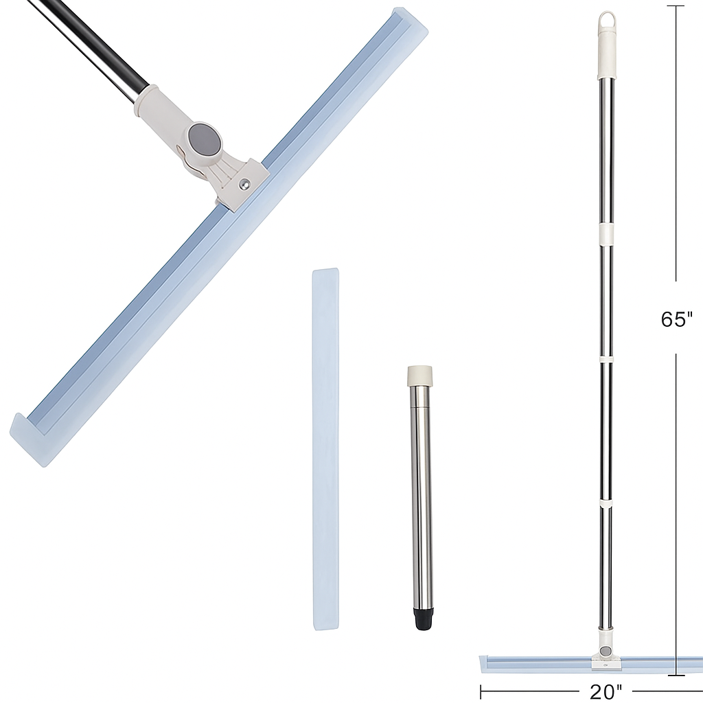 Keep your home spotless and streak-free with this Telescopic Window & Floor Squeegee, designed for both comfort and efficiency. Featuring a 20-inch wide silicone blade, it quickly removes water, soap, or condensation from windows, mirrors, tiles, floors, and even car windshields — leaving surfaces crystal clear in seconds.